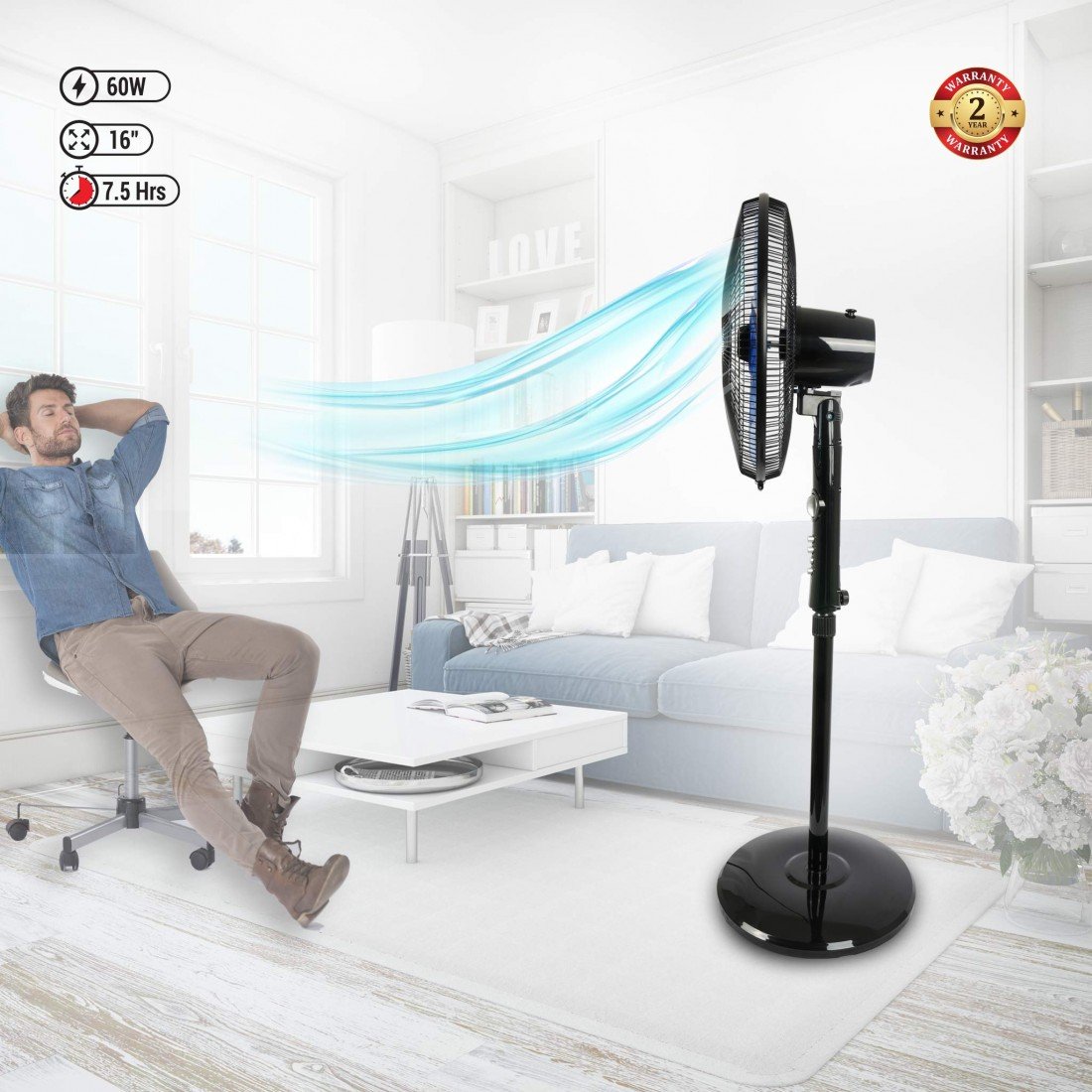 Stay cool and comfortable with the AFRA Electric Stand Fan – Model AF-1660BK. Designed for optimal airflow and user convenience, this 60W high-performance fan features five durable blades for powerful air circulation. Its adjustable height ensures targeted cooling for any room size, while the sleek black finish adds a modern touch to your home or office.this stand fan ensures safe and efficient operation. Built for the UAE climate and power standards, it’s ideal for daily use. Backed by a 2-year warranty, the AFRA stand fan is a reliable cooling solution you can trust.